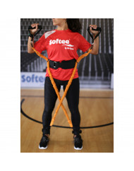 Material elástico, biomecánicamente ideal para trabajar la fuerza de las diferentes partes corporales, mientras se efectúan diferentes movimientos específicos de cualquier deporte.